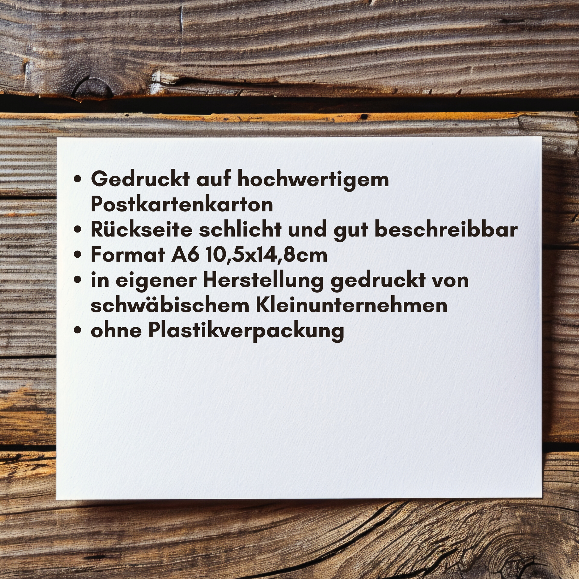 Postkarte mit schwäbischem Kulturgut. Gedruckt auf hochwertigem, festem mattweißen Papier.